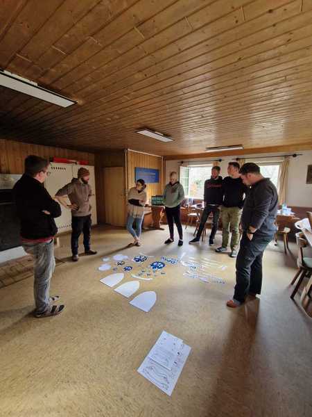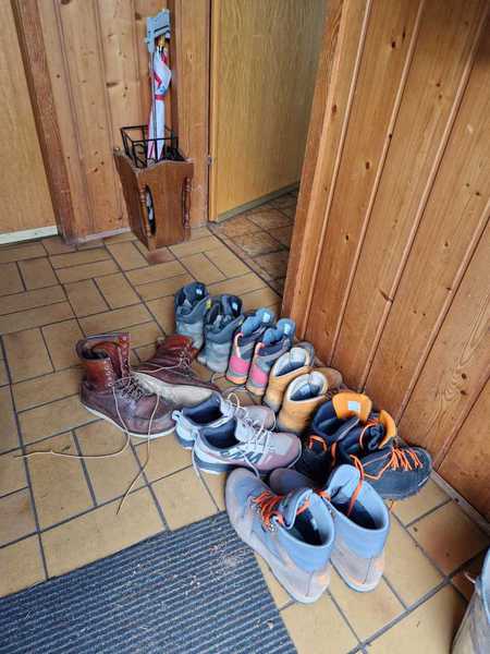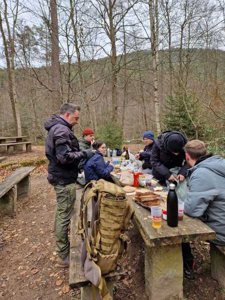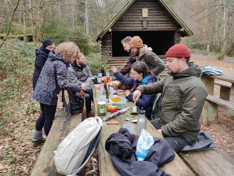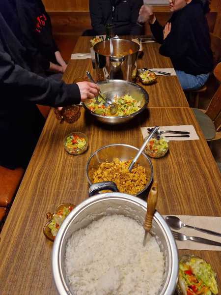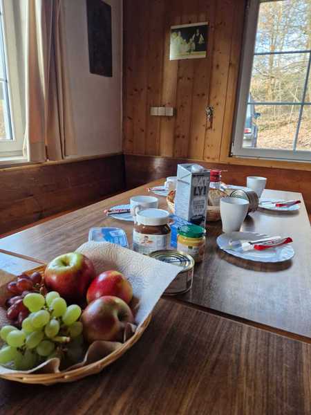 Leiterwochenende 2025 startete am Samstag nach beziehen der Hütte und Vesper im Rucksack, mit einer Wanderung. Nachdem die Sonne uns auf dem Weg begrüßte und wir Vitamin D getankt hatten, kehrten wir zu unserem theoretischen Teil zurück. Danach folgte der entspannte Part, bei guter Musik, tollen Gesprächen, der gemeinsamen Essenszubereitung und nicht zu vergessen dem spontanen "Jule" Trainingslager. Am Sonntag morgen frühstückten wir noch und gingen zum Abschluss noch ein wenig über die Mandelmeile.