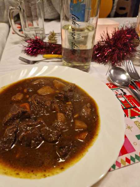 Begrüßungscocktail wurde das Weihnachtessen eingeläutet. Mit ''wilden Fingerfood-Vorspeisen'', einem von unseren Chefkochs selbstgemachten Wildgulasch und zum Nachtisch angereichtem